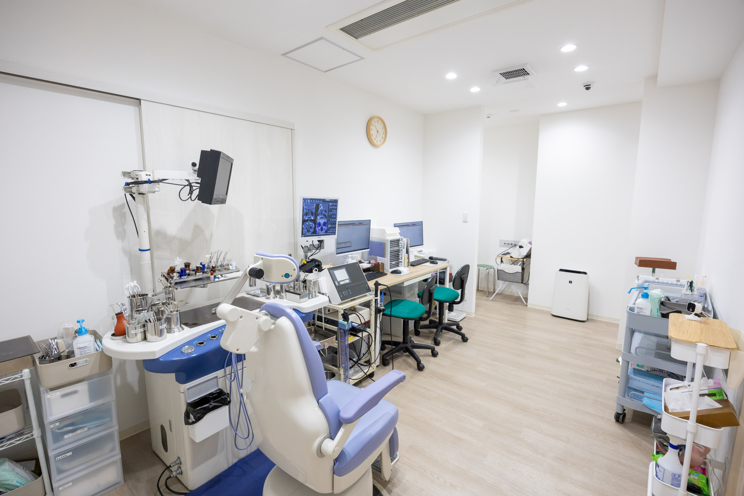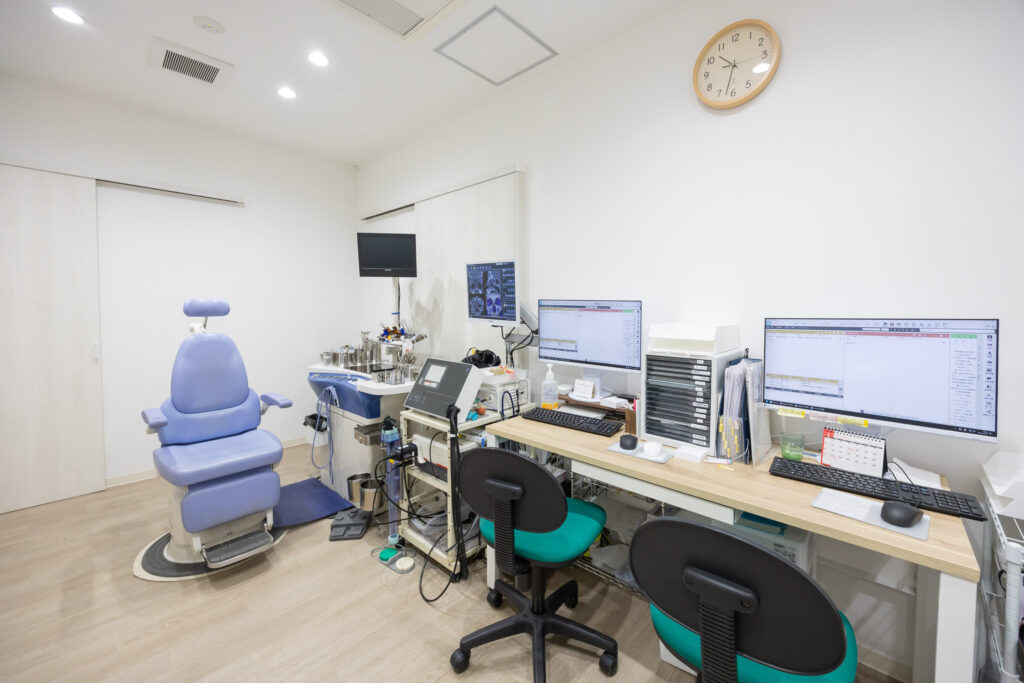 茨木市の耳鼻咽喉科クリニックの中では最も早くCTを導入しました。それまでは近くの病院まで撮影しに行ってもらっていましたが、その時間的・経済的負担の大幅な軽減に繋がりました! <CTの特徴> ・人体に受けるX線の量は従来のCTの1/35~1/7胸部レントゲンとほぼ同程度。 ・撮影時間はわずか18秒!!座ったまま撮影。 ・クリアで見やすい画像により、より詳しく診断。 このCTは耳鼻科専用に開発された装置です。そのため、耳や鼻といった細かい骨の抽出に非常に優れており、数十ミクロンという細かい情報を得ることができます。耳鼻科の病気は耳の中や鼻の中などのご自身では見えない部分がほとんどです。実際にCT画像を見ていただくことで、ご自身の状態がより分かりやすく、ご理解いただけると思います。 ピアス・イヤリング・ネックレス・義歯は事前に外して頂く必要があります。当日はピアスなどは付けず、髪はゴムでくくる程度にしてくださるようお願い致します。