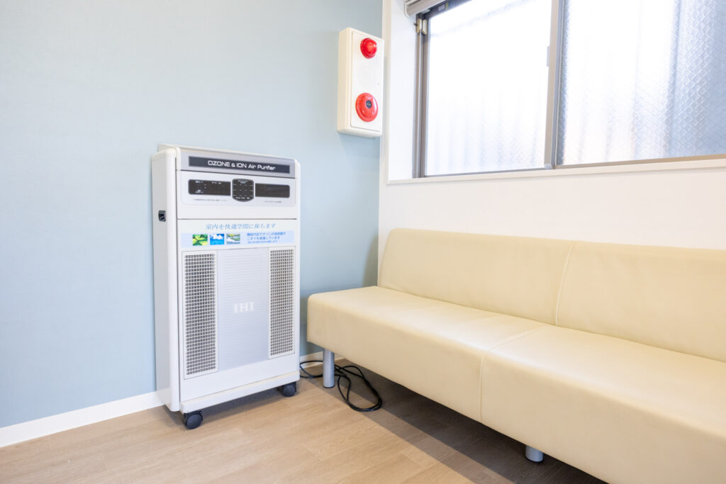 スタッフは1日2回の検温、手指消毒、マスク・ゴーグルの全員着用を徹底。来院者に対しては検温、手指消毒協力依頼(中待合いに入る前・診察後、治療が必要な方に対しては治療前の再度の手指消毒をお願いしております)。また1回の診察毎に診察椅子の消毒を行っています。医師は診察毎の手指消毒はもちろん、マスク・ゴーグル・ガウンも常に着用し、飛沫の可能性のある処置に対しては手袋着用としています。